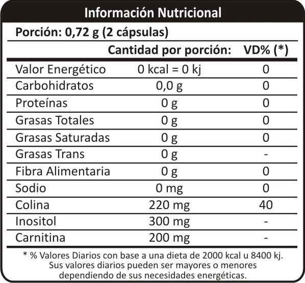 Ingredientes: Carnitina- Inositol – Colina