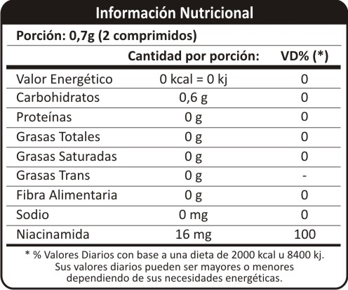 La NIACINAMIDA participa en la síntesis de algunas hormonas y es fundamental para el crecimiento, además de funciones biológicas como mantener el buen estado del sistema nervioso, produce neurotransmisores, mejora el sistema circulatorio relajando los vasos sanguíneos, manteniendo una piel sana y estabilizando la glucosa en la sangre.