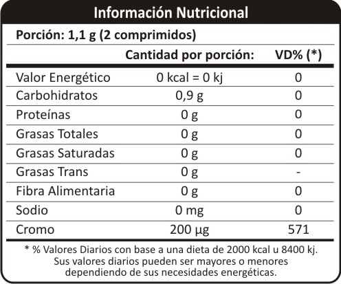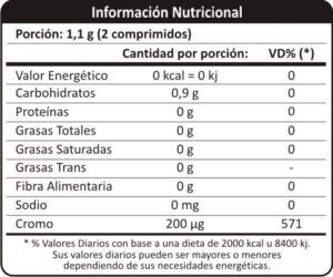 Ingredientes: Garcinia Cambogia, Tripicolinato de Cromo