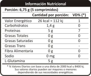 La L- glutamina es un componente proteico que favorece la recuperación muscular tras la práctica deportiva de intensidad alta, habitualmente utilizado para reponerse de los entrenamientos intensos donde los músculos acaban muy castigados (levantamiento de pesas, maratón).