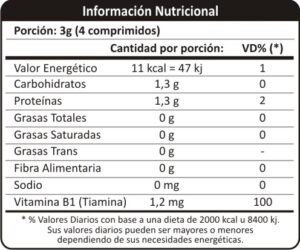 Ingredientes: Espirulina, Vitamina B1